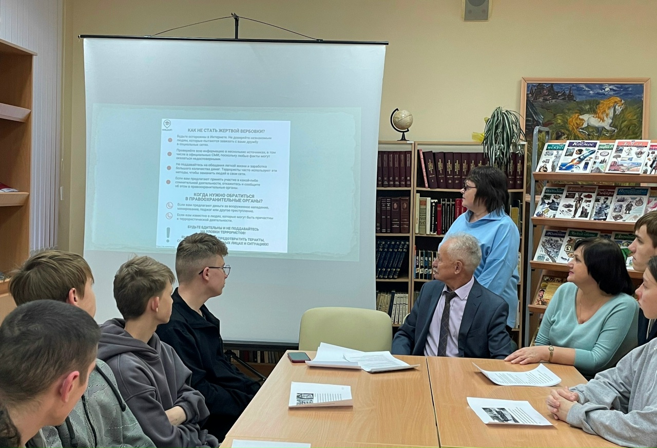 В его рамках сотрудники службы постинтернатного сопровождения педагог-психолог Риф Ахметов и социальный педагог Елена Крысина проинформировали участников о современных информационных угрозах в сети Интернет, рассказали о методах вербовки в соцсетях и мессенджерах, разъяснили, как противодействовать вербовщикам и мошенникам, и еще раз напомнили об ответственности.