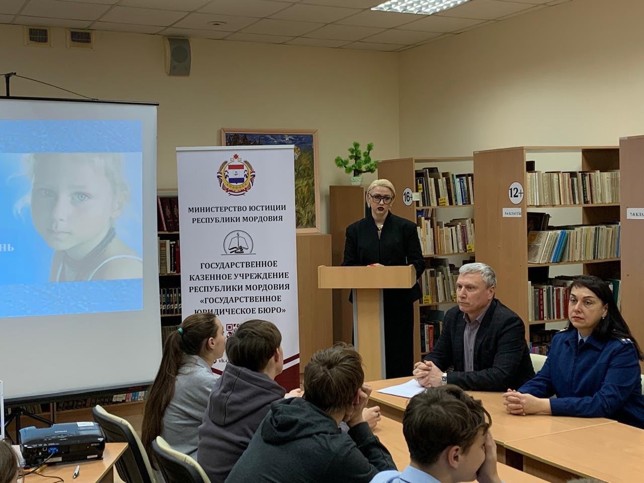 Старший помощник Прокурора Республики Мордовия по надзору за исполнением законов о несовершеннолетних и молодежи Зульфия Раисовна Салькаева обозначила роль прокуратуры в обеспечении законности и правопорядка, в защите прав детей во всех сферах общественной жизни, привела практические примеры из повседневной надзорной деятельности, обратила особое внимание на опасность современных информационных угроз, в том числе в сети «Интернет». Директор Государственного казенного учреждения Республики Мордовия «Государственное Юридическое Бюро» Наталья Владимировна Киреева познакомила ребят с основными правами и свободами, изложенными в Конвенции о правах ребенка, Конституции РФ, способами применения их в жизни; разъяснила положения Уголовного кодекса РФ и Кодекса об административных правонарушениях РФ, предусматривающие ответственность за совершение подростками преступлений и правонарушений. В рамках встречи были рассмотрены различные правовые ситуации, вопросы, на которые ребята попытались ответить самостоятельно, а затем получили профессиональный комментарий юриста.